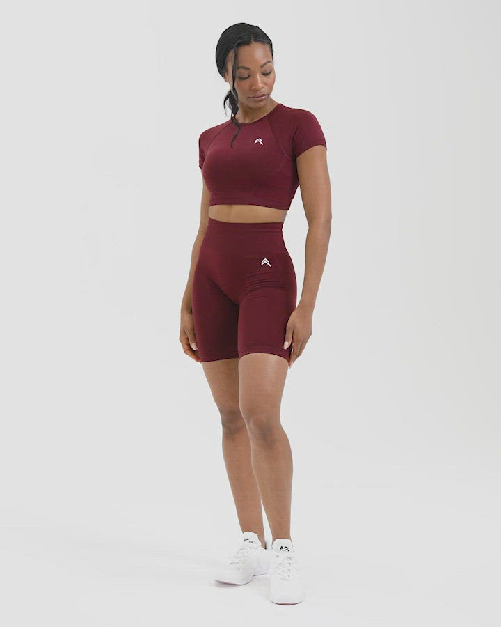 Effortless Seamless Short Sleeve Crop Top with White Logo