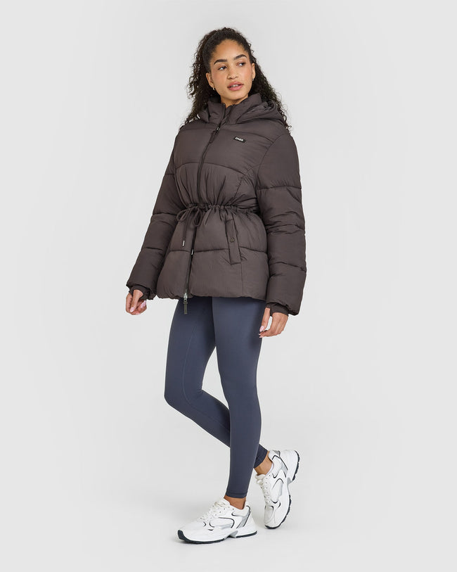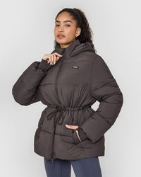 Warm up and feel snug in the Mid Length Puffer Jacket. With a mid-length design and a hood, it will keep you dry and comfortable on colder days. Your valuables will be safe while you’re on the go, as it features an internal chest pocket. The branded drawstrings at the waist give you a cinched-in, flattering look.